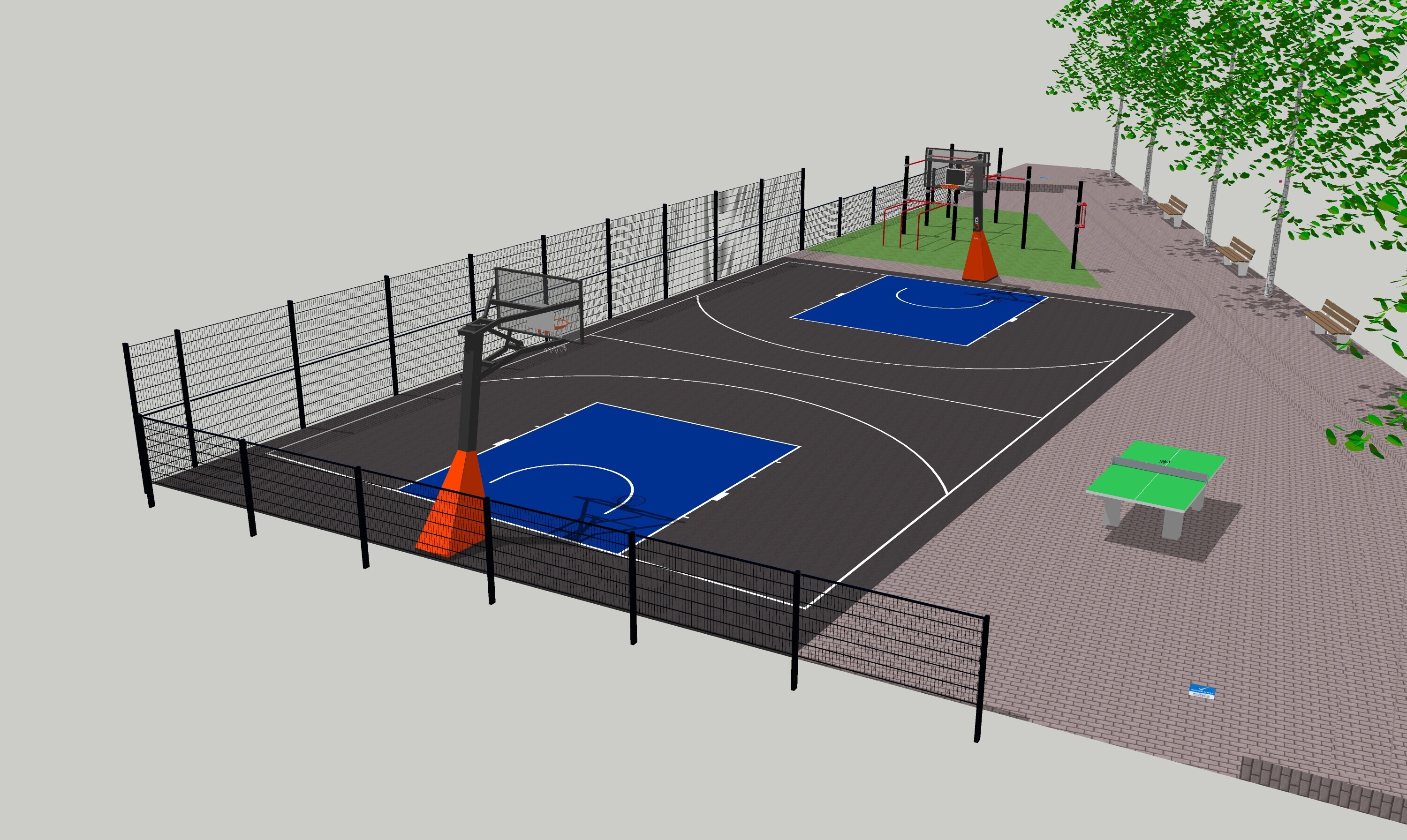 De ondergrond van het basketbalveld wordt een gietvloer. In de gietvloer komen stippen voor voetbalmogelijkheden. Om meer veiligheid te creëren komt er langs de kant (waar de auto’s geparkeerd staan) een verhoogd hek. Dit hekwerk wordt niet hoger dan 1.60 meter. De fitnesstoestellen die nu op de sportplek staan gaan weg. Hiervoor in de plaats komt een Calisthenics park. Calisthenics is een sport waarbij men traint met eigen lichaamsgewicht voor meer kracht, stabiliteit en mobiliteit. De openingstijden blijven zoals het nu is.