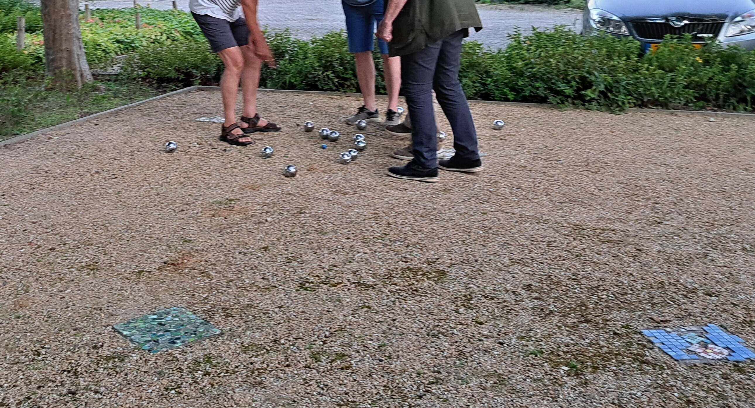 Afgelopen jaar is ‘n tiental bewoners begonnen met Jeu de Boules te spelen op ons pleintje. Dat bevalt goed en bevordert de onderlinge communicatie en verbindt. We doen dit op het huidige pleintje maar de ondergrond is niet echt geschikt voor Jeu de boules en het is geen afgezette baan. Daarom ons verzoek om een deel van het pleintje en een stukje plantsoen om te vormen tot een Jeu de boules baan en als het financieel mogelijk is met 1 of 2 bankjes erbij.