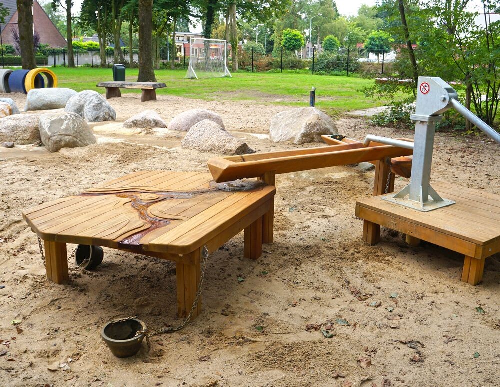 Een ( natuur) waterspeel plaats voor kinderen als aanvulling op de bestaande toestellen die al staan. Met bijvoorbeeld een waterpomp en wat mooie boomstammen. Het zou denk ik ook een goede aanvulling zijn voor de mooie vlinderstrook die er al ligt. De kinderen kunnen dan ook de plantjes water geven.