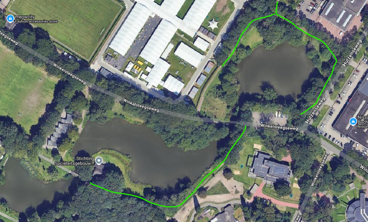 Locatie: Rondom de vijvers in de buurt, met nieuwe verbindingen bij de Hulzenseweg en voormalige sociëteit 'Voor Anker'.