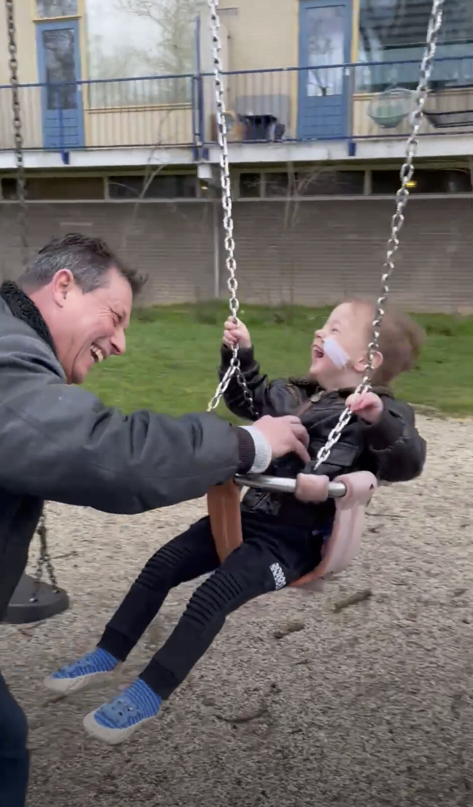 Dankjewel lieve meneer van de gemeente,Bence heeft echt de grootste schik in zijn schommeltje.