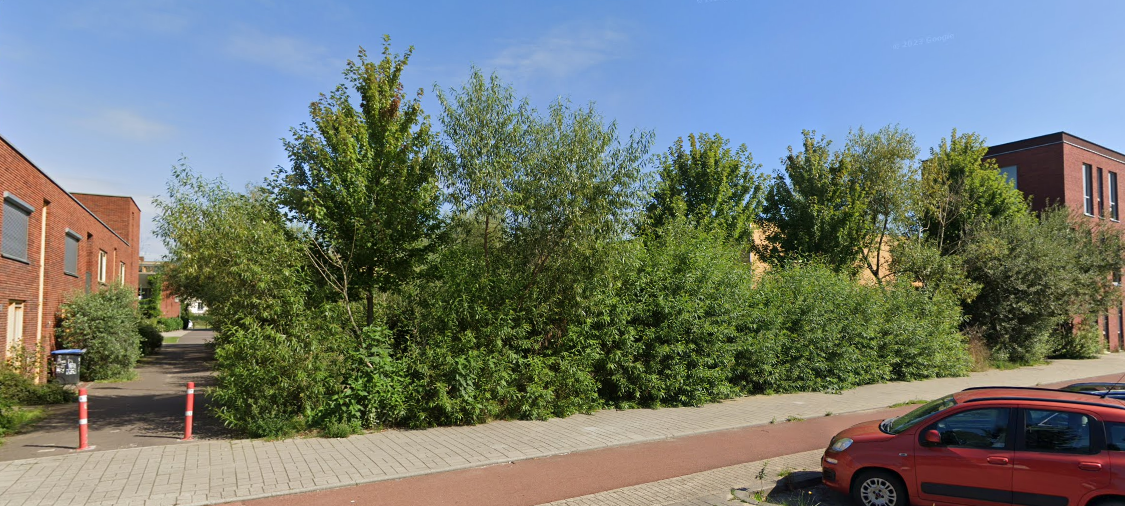 Aan de zijde van de weg komt een takkenriil van wilgentakken, vlechtend door de bestaande begroeiing. Aan de zijde van de woningen wordt een stevige haag geplant van Carpinus Betulus. Dit alles om te voorkomen dat de kinderen de straat op rennen.