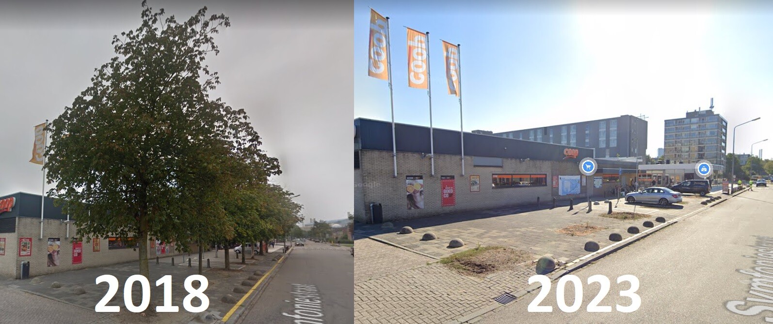 Goed punt! En mooi inzichtelijk gemaakt met die foto's. Ik geloof dat er binnenkort veel bomen worden bijgeplant. Meer groenvakken blijft dan wel nodig.
