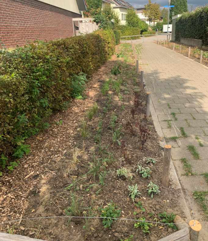 Bloemenstrook met doel vergroten van de biodiversiteit,op de plek waar nu gazon is, tussen de woningen aan Terralaan 18 en Terralaan 20. Het idee is dat enkel inheemse soorten gepoot zullen worden, waarbij nagedacht wordt over welke planten nodig zijn om kwetsbare diersoorten te beschermen.