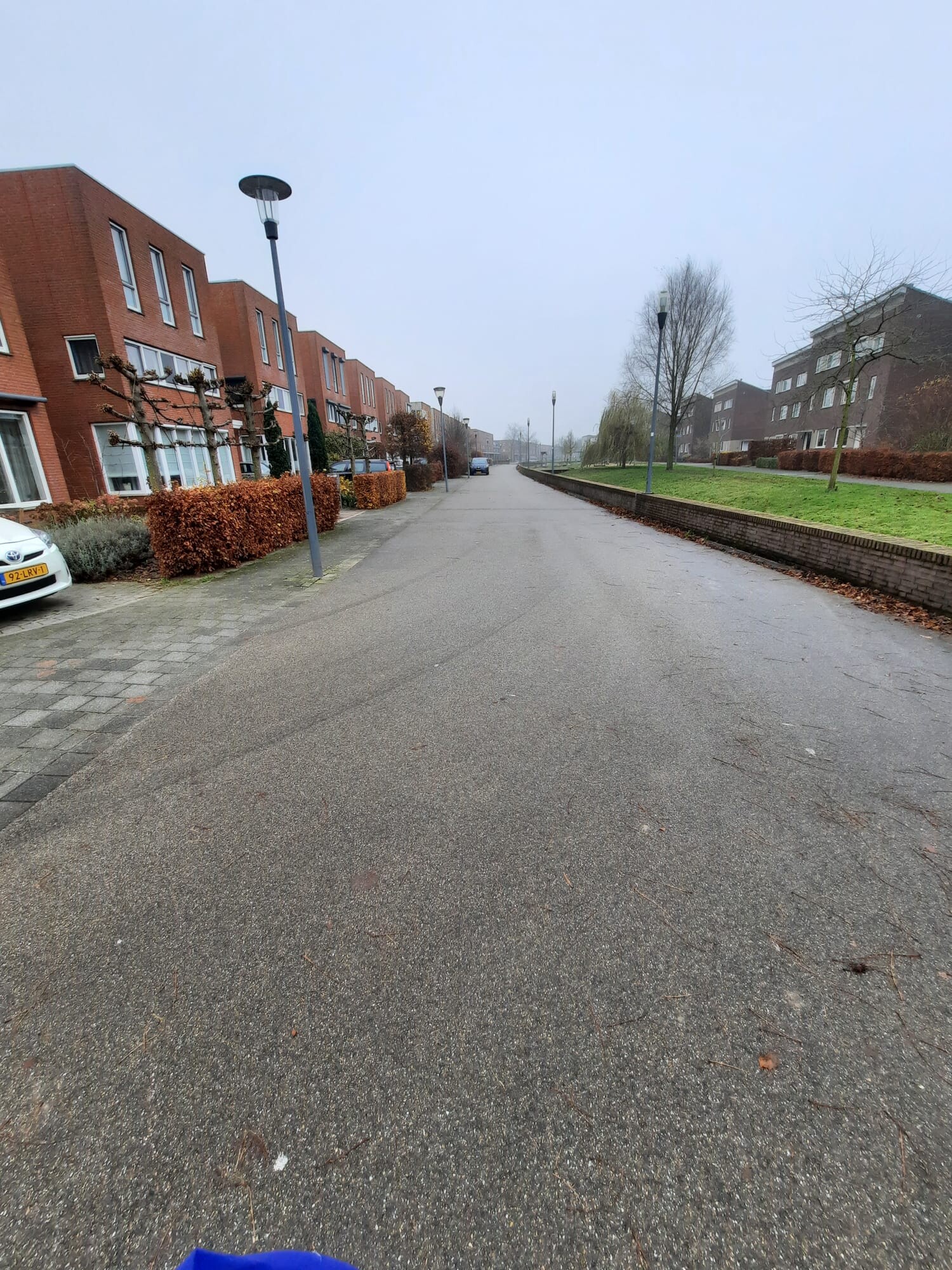 • Drie bomen met plantvakken en een haag langs het appartementencomplex, onderhouden door de bewoners zelf.