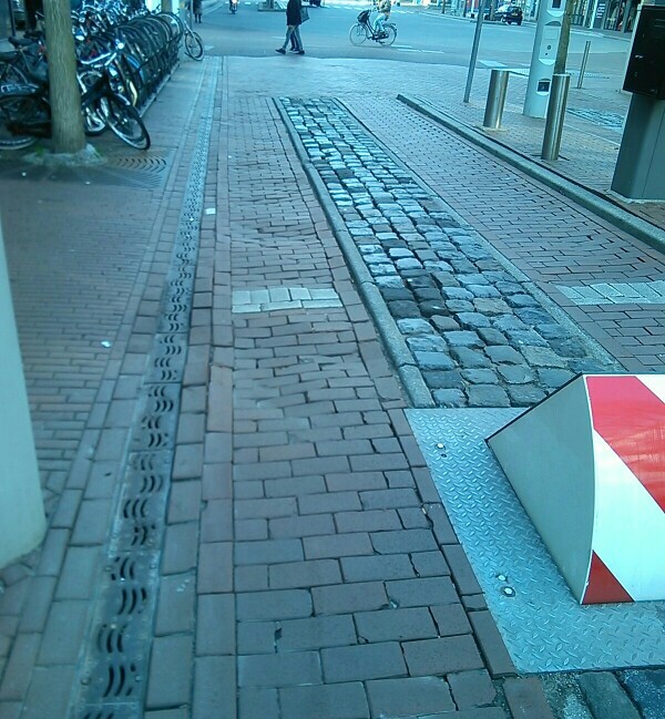 De rijbaan is ernstig verzakt ter hoogte van de road barrier. De rijbaan wordt opnieuw bestraat.