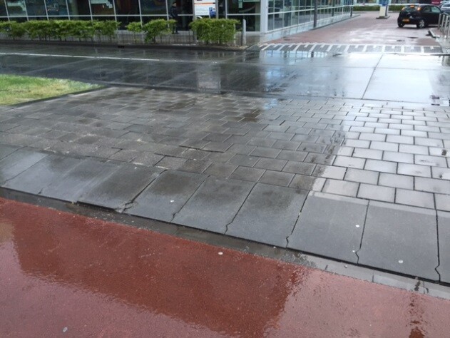 Ter hoogte van de ingang naar het ROC liggen tegels en drempelelementen los. Deze worden hersteld.