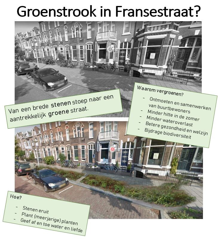 Zijn er (aangrenzende) bewoners die hier ook enthousiast van worden? Ik woon zelf niet in de Fransestraat maar kan wel helpen met bijvoorbeeld stenen eruit halen, planten, etc.