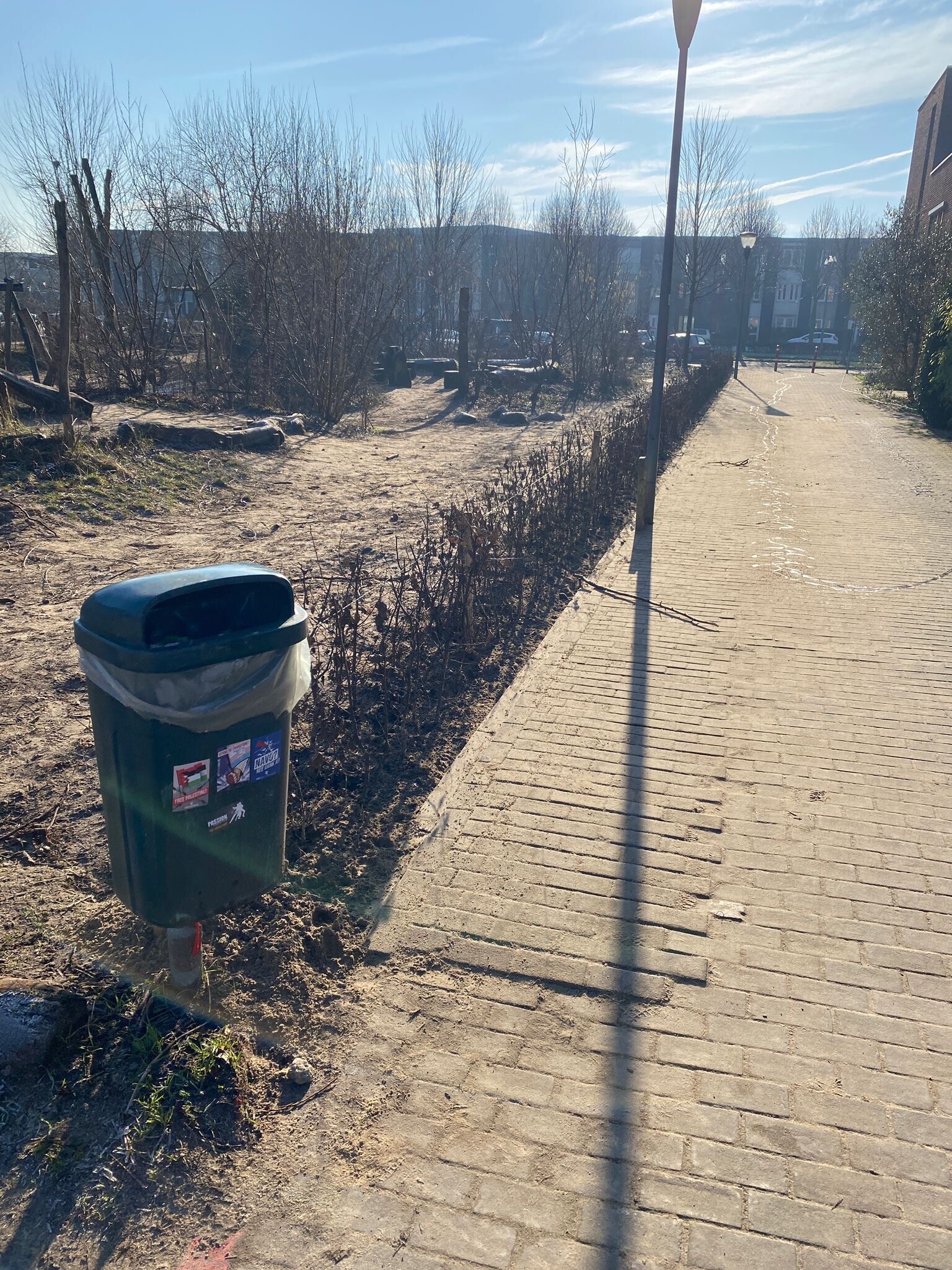 Aan de zijde van de weg komt een takkenriil van wilgentakken, vlechtend door de bestaande begroeiing. Aan de zijde van de woningen wordt een stevige haag geplant van Carpinus Betulus. Dit alles om te voorkomen dat de kinderen de straat op rennen.