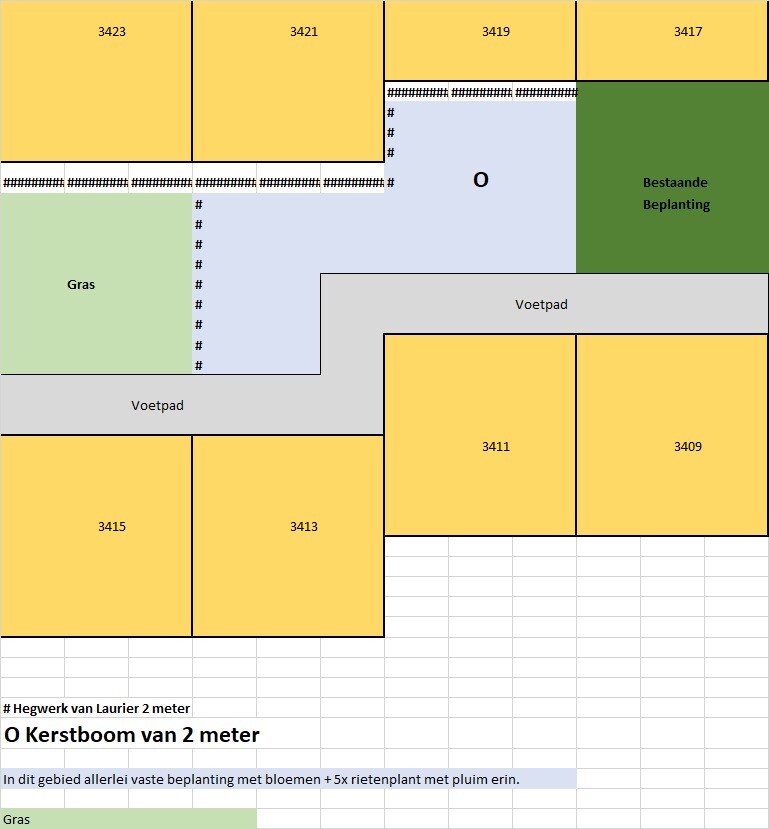 Het stuk gemeente grond wat loopt vanaf mijn buren 3409 t/m 3415 zouden we graag hervormen doormiddel van groen. Op dit moment lijkt het alsof er een bom is ontploft. We zouden graag een groot deel eruit willen halen en zelf nieuwe vorm geven met o.a laurier,kerstboom,gras, vaste planten met bloemen. Zie bijlage voor het idee. Ik als hoofdaanvrager samen met 3415 willen dit op ons nemen. Bijgaand het idee in de afbeelding. Dit is tevens het idee. Akkoord van de overige bewoners moet nog worden gevraagd.