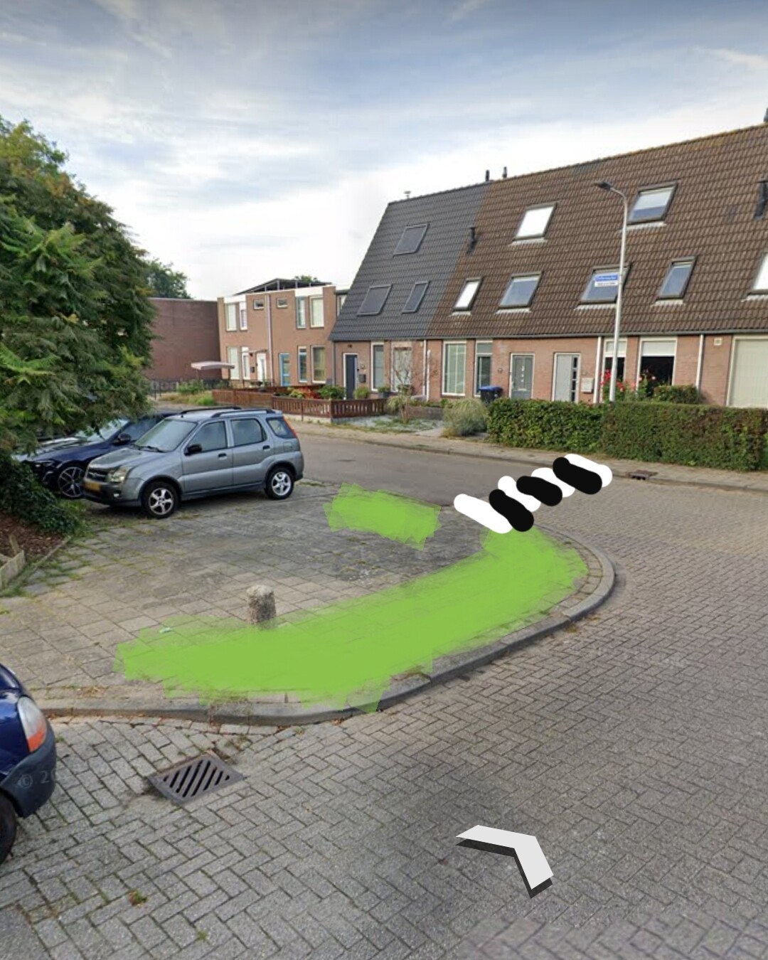Het zou een mooi idee zijn om op dit stukje stoep in de binnenbocht een laag stukje tuin aan te laten leggen door de gemeente. Het moet niet te hoog zijn, want het moet overzichtelijk blijven, maar het moet ook zorgen voor een stuk veiligheid voor kinderen en auto's zodat ze meer opletten voor ze de bocht nemen. Daarnaast is het ook een mooi stukje vergroening van deze stoep.