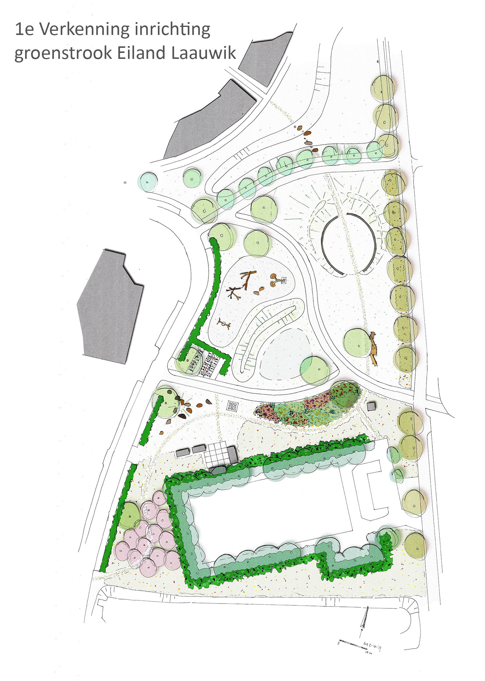 Stedenbouwkundige/landschapsarchitect Stef van Roemburg ontwerpt samen met omwonenden de inrichting van de groenstrook op het eiland Laauwik. Er is ruimte voor groen, spelen en ontmoeten. Na de aftrap in mei is in oktober met een klankbordgroep een eerste sessie geweest om input op het schetsontwerp op te halen. Die informatie wordt nu verwerkt. Tegen februari 2018 wordt een tweede klankbordgroepbijeenkomst georganiseerd.