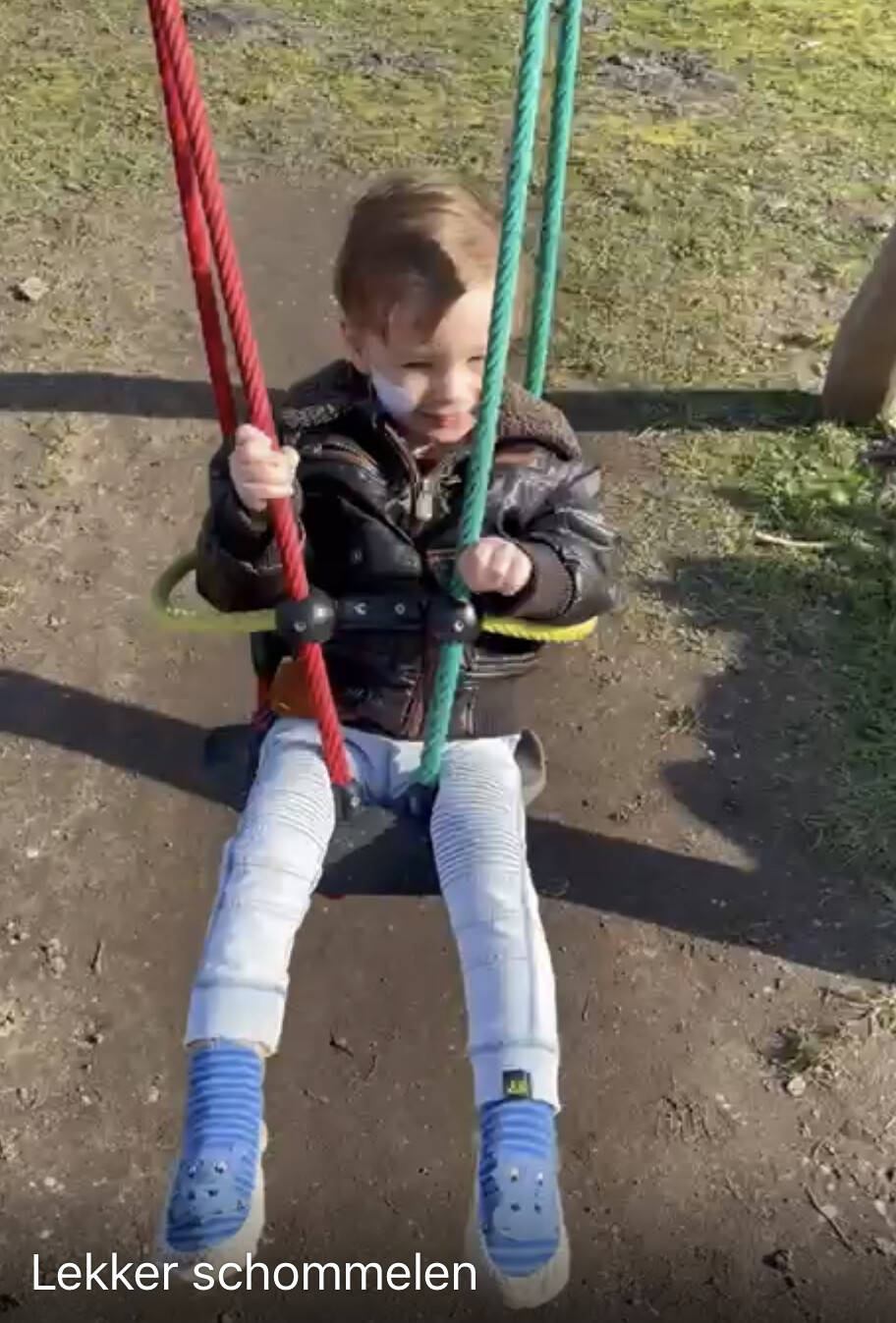 Dankjewel lieve meneer van de gemeente,Bence heeft echt de grootste schik in zijn schommeltje.