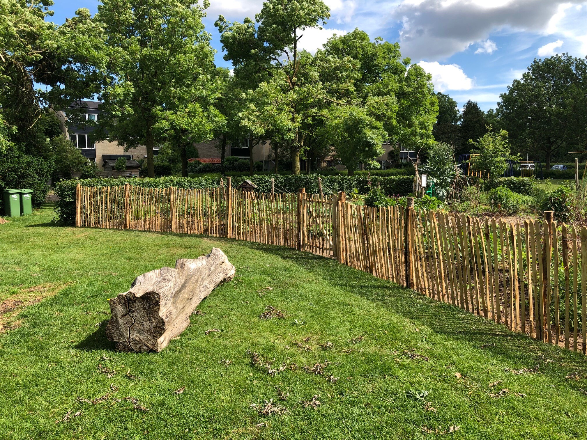 Plaatsen van een schapenhek bij moestuin de Kiemtuin in Weezenhof