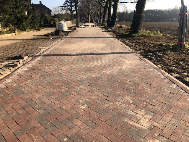 De werkzaamheden vorderen goed. Het deel met de betonstenen is afgelopen vrijdag open gesteld. De parkeerstroken behoeven nog aanpassing en het smalle deel moet nog voorzien worden van halfverharding. Openstelling van de gehele weg laat nog even op zich wachten omdat de halfverharding na het aanbrengen nog 14 dagen niet met auto's bereden mag worden. De huidige planning staat ter informatie links op deze pagina bij de bestanden.