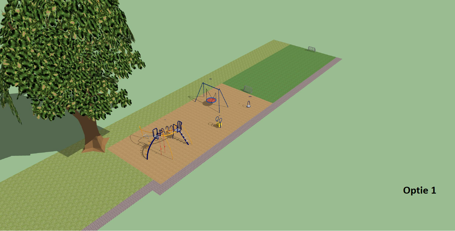 Wij hebben inmiddels de stemmen geteld hier is uitgekomen dat optie 2 de meeste stemmen heeft gekregen.  optie 2, balanceerbalk, vogelnestschommel, taludglijbaan en een klimtoestel uranus en een kunstgrasvoetbalveld.