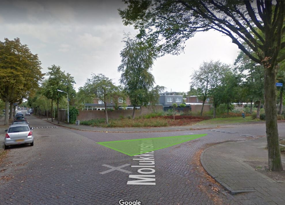 Ditzelfde kan mijns inziens gedaan worden op de T-splistsing Molukkenstraat/Prof. Huijberstraat. De tijd die je nu nodig hebt om over te steken is gevaarlijk lang. Daarbij nemen fietsers en automobilisten vaak de binnenbocht waardoor gevaarlijke situaties ontstaan. In de bijlage 'molukkenstraat T-splitsing' heb ik een voobeeld gegegeven waar het verkeerseiland geplaatst zou kunnen worden. Dit eiland zou dan kunnen dienen als veilige tussenstop. Maar ook een border met bijvoorbeeld wilde bloemen kan aansluitend worden gemaakt.