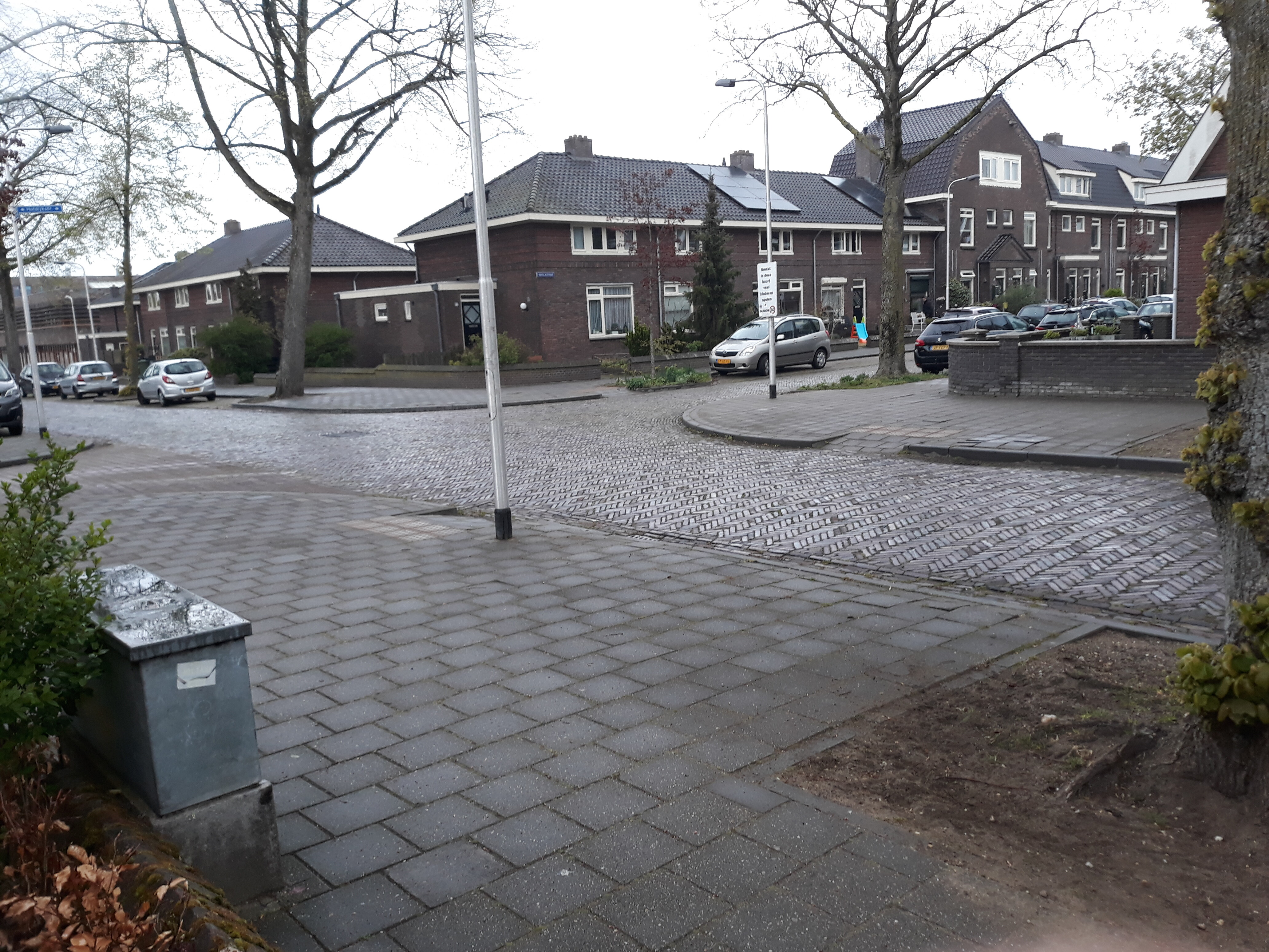 nogal stenig kruispunt/hoek, kan wel wat minder plaveisel gebruiken. ook goed voor regenwater infiltratie