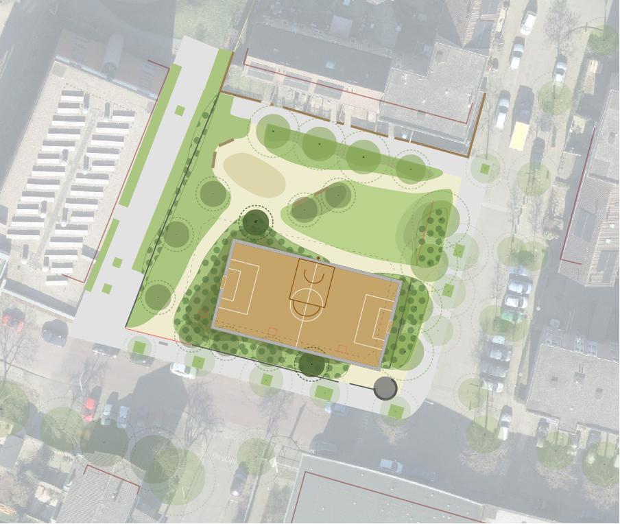 het idee is de groene keet waar nu vooral gerookt en gehangen wordt te verplaatsen naar elders en meer groen te maken op het plein langs de randen aan de binnenkant van het plein. Misschien ter compensatie van de keet weghalen meer bankjes en openbare fitnes toestellen zoals in het Westerpark.