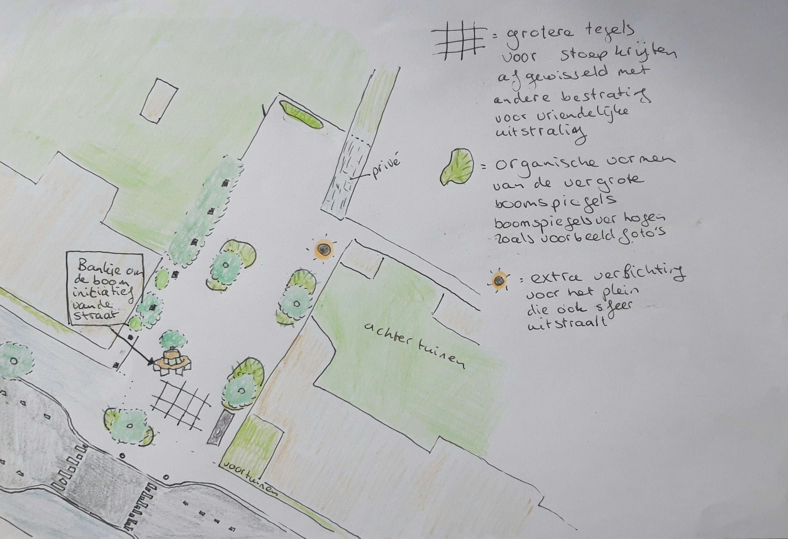 - Middengebied van het plein wordt opengehouden voor spelen en reeds bestaande straatevenementen