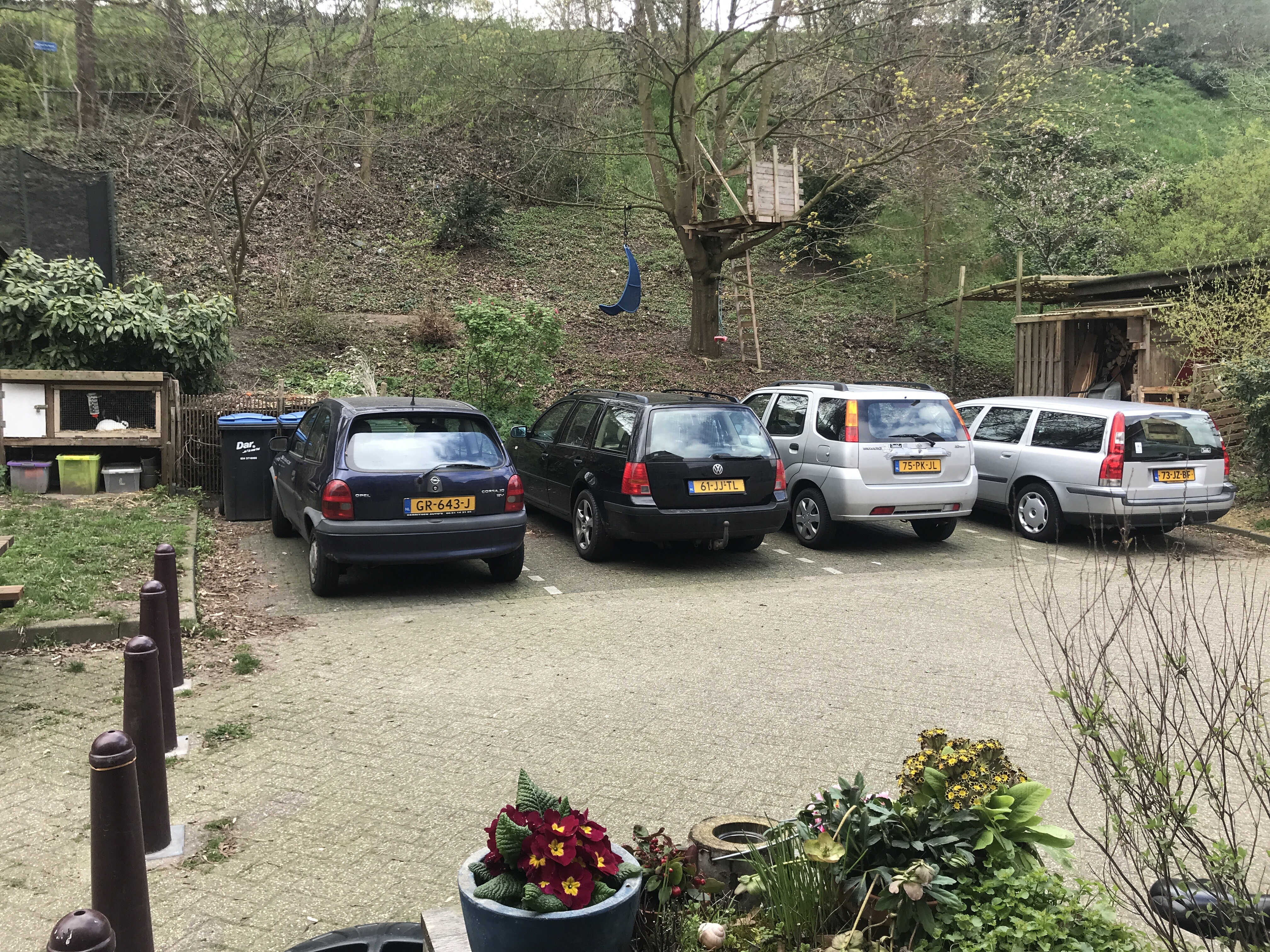 Deze huisnummers vallen namelijk net buiten de paaltjes, doordat de plek van deze paaltjes niet verschoven kan worden ivm draaien vrachtwagens en dan hebben zij ook nog de uitlaatgassen van 4 auto's als zij buiten op hun stoepje voor de deur zitten. Dus het zou fijn zijn als zij iets meer betrokken zouden zijn bij de 'tuin'. En het vervangen van 2 parkeerplekken met grond, aansluitend op het huidige grasveld zou erg prettig zijn.