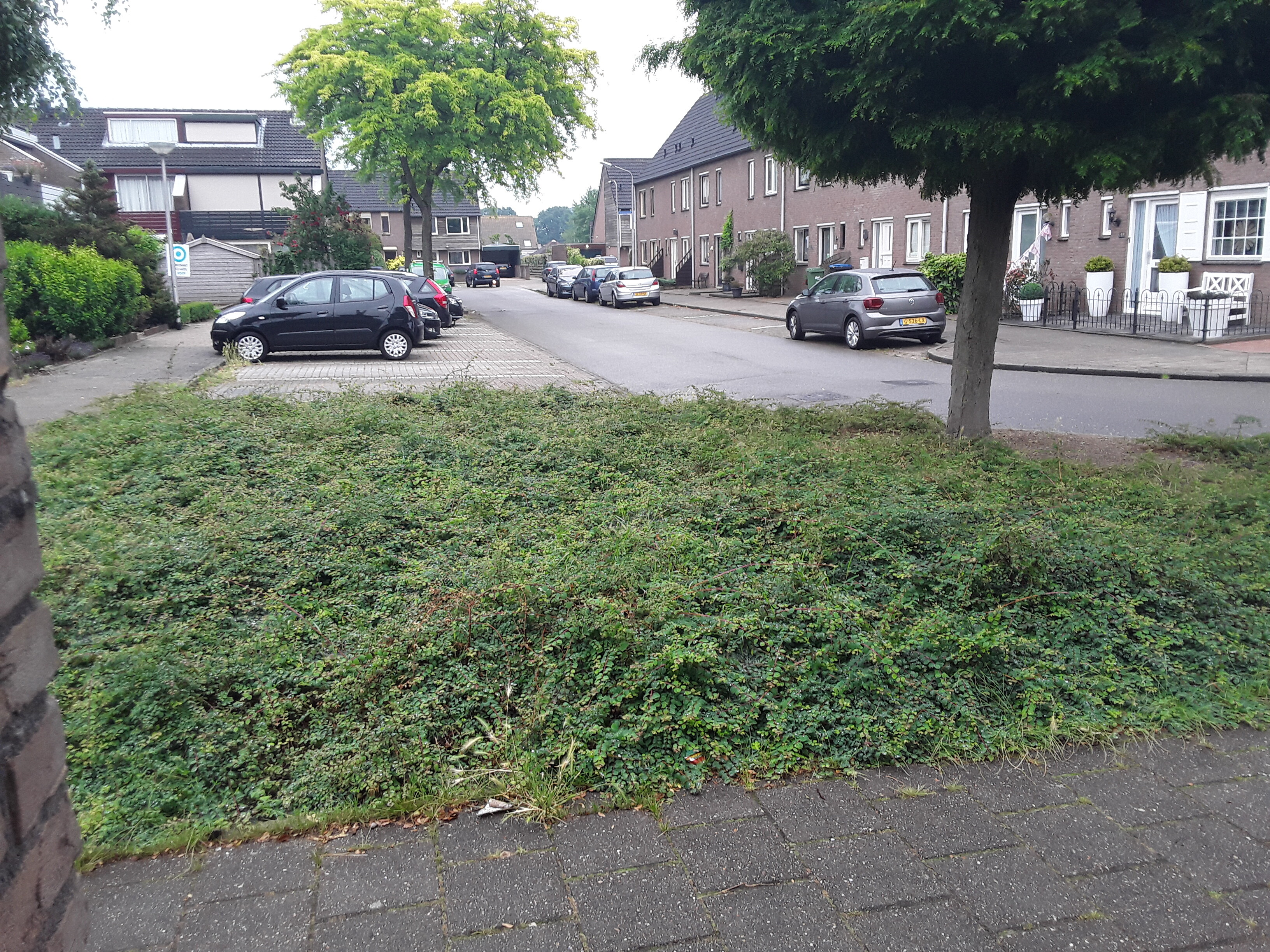 Verwijderen laaggroei, plaatsen bloeiende planten, aanleg minipaadje en plaatsen minibieb.