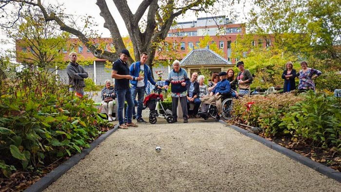 Het 'Zonnebloemparkje' wordt nu nauwelijks gebruikt. Voor velen is het deel van hun hondenuitlaatroute, en helaas ruimt een kleine minderheid de poep niet (altijd) op. Daarom wordt het maar weinig gebruikt door kinderen om te spelen. Soms zitten er een paar mensen even op een bankje, want de schaduw onder de bomen is een pré. Maar dat is het wel. Wij, een tiental bewoners van de Zonnebloemstraat, hebben al vaker gesproken over hoe we het parkje wat meer kunnen benutten. Een speelhoekje, een moestuin-hoekje, het is allemaal al naar voren gekomen, maar lijkt hier lastig te realiseren. Een petanquebaan daarentegen lijkt ons wél realistisch: qua oppervlak volstaat 3 x 12 meter, dus het is goed in te passen. Sommigen van ons vinden jeu-de-boules leuk, maar we doen dat nu vooral op vakantiebestemmingen. Wat is leuker dan dit gewoon direct in de buurt te doen, op een vast moment in de week, maar ook gewoon spontaan? We verwachten daarmee elkaar en ook andere bewoners wat vaker (sportief) te ontmoeten.